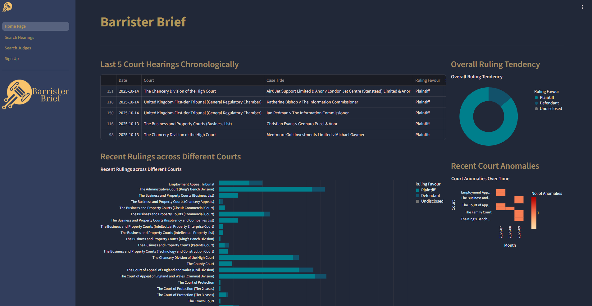 We engineered and deployed a cloud-hosted data pipeline to automate the entire process: ingesting the raw transcripts, structuring the data (identifying cases, rulings, and judges), and storing it in a robust database solution. This system enables sophisticated analytics, allowing users to easily answer questions like "How many cases has a judge sat?" or "How often do they rule a certain way?"